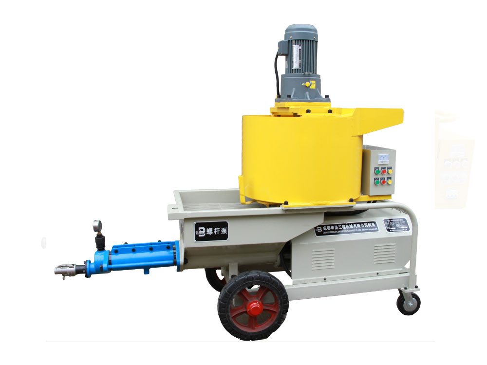 本機由攪拌機構、增壓輸送機構和電氣系統組成。增壓輸送機構由電動機、減速器、輸送螺旋、增壓定子總成、測壓接頭、注漿管等組成。其特點如下:
