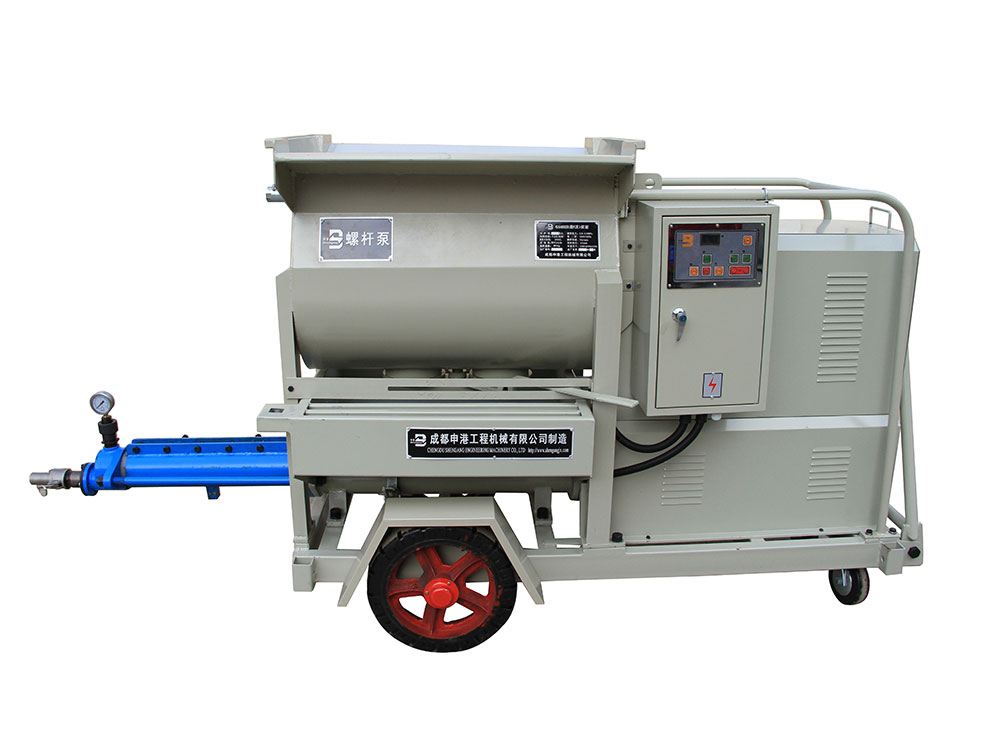 該泵結構新穎、構思獨特;避免了灌注稠漿較困難的不足,使用安全方便、效率高。本機主要由攪拌機構、增壓機構及電控系統等組成,其特點如下: